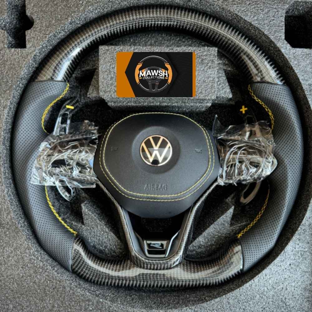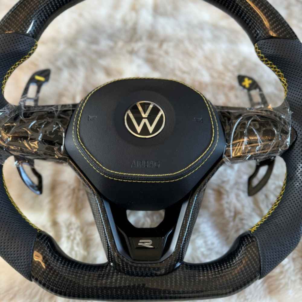 Non-heated. NOTE: • It is a made to order steering wheel. Therefore, waiting time for delivery is 20-25 working days. • When placing your order, please make sure to provide your vehicle model and year at checkout to ensure compatibility. • (Customers can also customise the steering wheel such as change the colour of stitching and AMG colour. Please mention in “Remarks” at checkout). High-Quality Volkswagen MK8 Carbon Fibre Steering Wheel Elevate your vehicle’s interior with our Volkswagen MK8 Carbon Fibre Steering Wheel—engineered for superior quality, performance, and style. Designed specifically for the MK7 platform, this steering wheel blends precision craftsmanship with cutting-edge carbon fibre technology, providing both an upgraded aesthetic and an enhanced driving experience. Whether you’re looking to upgrade your personal vehicle or enhance a fleet, our Volkswagen MK8 Carbon Fibre Steering Wheel offers the ultimate blend of quality, style, and performance.